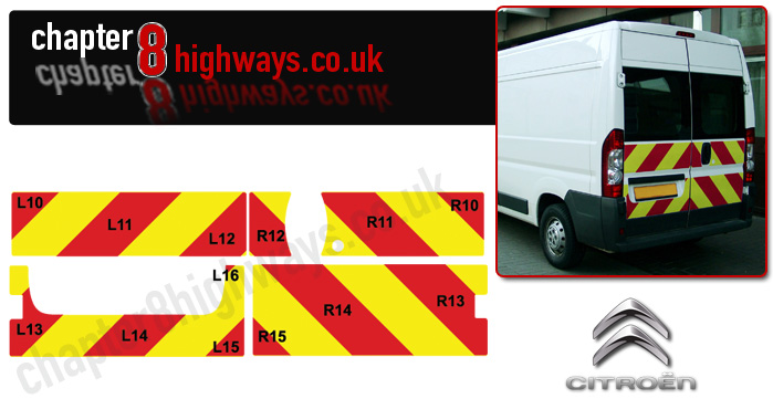 When ordering, to guarantee that we supply you with the correct Chevrons for your vehicle, please ensure that you supply us with full Vehicle Specifications including wheelbase, Height, Year of manufacture and Door details (Tailgate or Barn Doors). CLICK ON THE THUMBS FOR FURTHER DETAILS OF EACH KIT/VEHICLE.